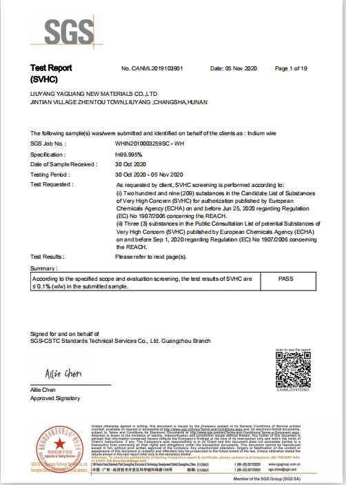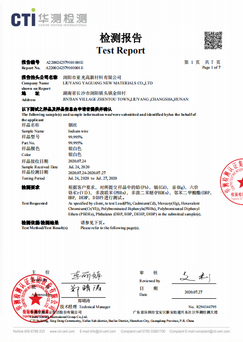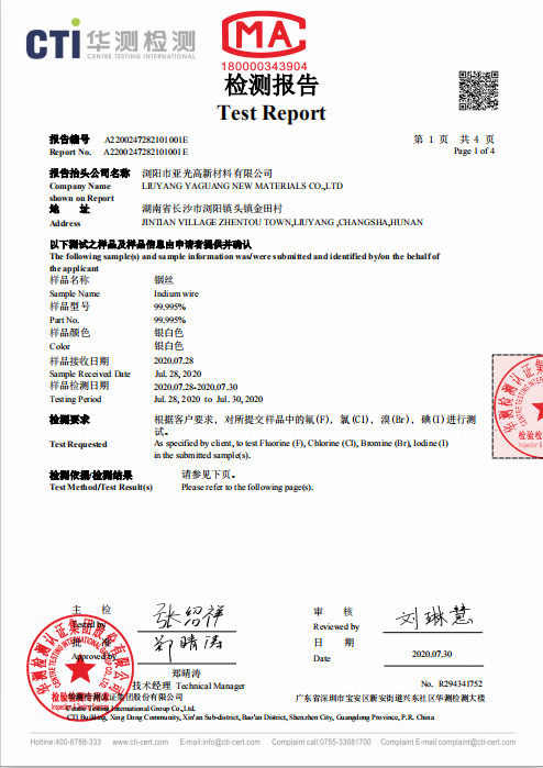 我公司是一家專業生產銦制品的廠家,通過了SGS認證,經CTI華測檢測,質量好,放的心的產品,歡迎前來洽談采購!